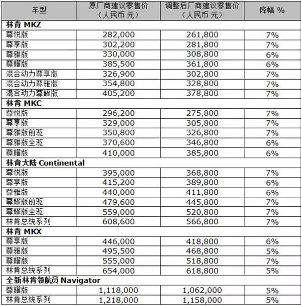 事实上,在本次针对美国生产的汽车进口关税上调之前,林肯刚刚迎来利好。5月22日,国家发布《关于降低汽车整车及零部件进口关税的公告》,对进口关税实行不同程度的降低。5月25日,林肯宣布下调在华车型零售价,全系车型的降价幅度达到2-6万元。